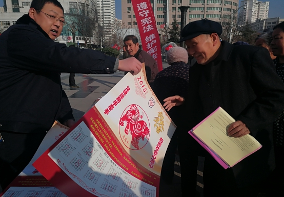 ????社區(qū)工作人員向群眾發(fā)放《普法”系列宣傳手冊》、《信訪條例》、《社區(qū)居民,流動人口法律法規(guī)基本常識》、《法律援助法律知識》等法律法規(guī)知識宣傳資料。通過活動的開展,使廣大居民群眾的法律意識和安全意識得到了進(jìn)一步提高,收到良好的效果。同時也深入轄區(qū)院落,進(jìn)行法制宣傳活動,并向社區(qū)居民、行人發(fā)放各類法制宣傳材料及宣傳環(huán)保袋。教育居民增強(qiáng)法制意識和自我保護(hù)意識,當(dāng)自身權(quán)益受到侵犯時,學(xué)會運(yùn)用法律武器保護(hù)自身的合法權(quán)益。