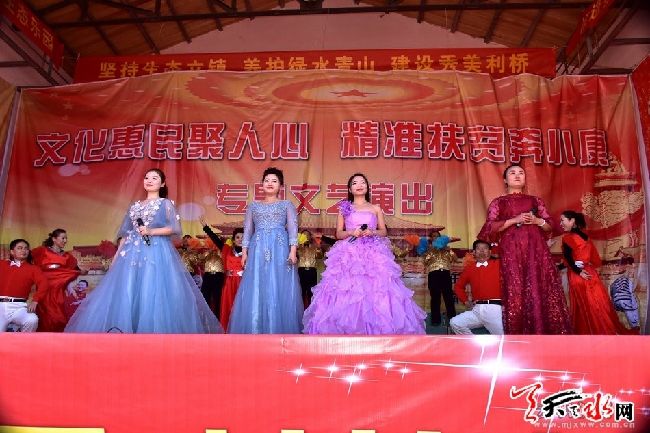天天天水網(wǎng)訊【記者陳少娟】時(shí)值寒冬,滴水成冰,但麥積區(qū)利橋鎮(zhèn)文化廣場(chǎng)上卻是暖意融融,熱鬧非凡。1月11日,由市婦聯(lián)主辦,麥積區(qū)利橋鎮(zhèn)政府、麥積區(qū)文化廣播影視局承辦的“文化惠民聚人心,精準(zhǔn)扶貧奔小康”送文化下鄉(xiāng)慰問演出在這里精彩上演。