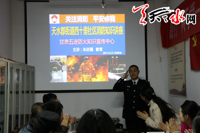 天天天水網(wǎng)訊(通訊員李小霞)為進(jìn)一步加大安全生產(chǎn)宣教工作力度,推動(dòng)落實(shí)安全生產(chǎn)主體責(zé)任,全面提高全民安全素質(zhì),有效防范和遏制各類事故發(fā)生。近日,西十里社區(qū)邀請(qǐng)甘肅省武警防火知識(shí)宣傳中心朱志強(qiáng)教官開(kāi)展“關(guān)注消防、珍愛(ài)生命、遠(yuǎn)離火災(zāi)”為主題的安全消防知識(shí)講座。