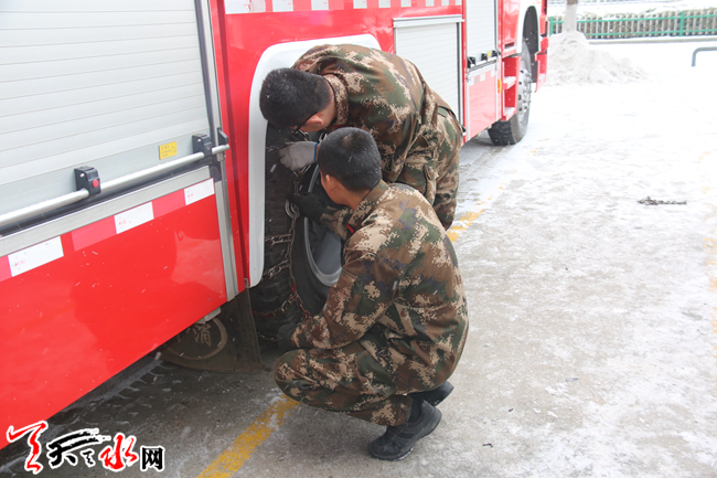 ????天水:消防車“穿上”防滑鏈抵御“大寒潮”來襲