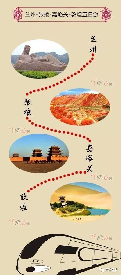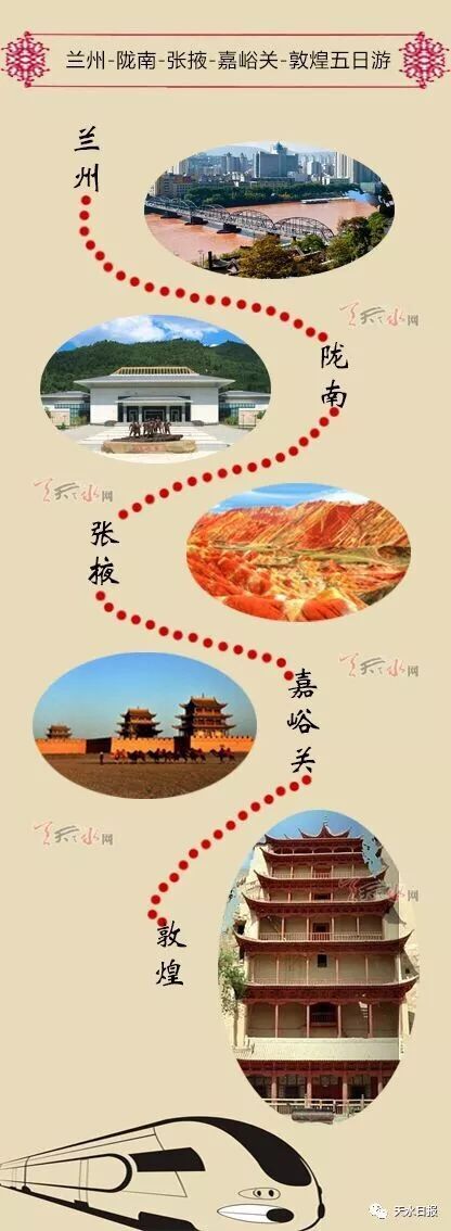 天天天水網(wǎng)訊【記者羅雙紅】中國(guó)鐵路蘭州局集團(tuán)有限公司日前發(fā)布消息稱,將圍繞滿足紅色旅游、家庭旅游、休閑旅游、生態(tài)旅游等市場(chǎng)需要,挖掘甘、寧境內(nèi)旅游資源潛力,開行“環(huán)西部火車游”旅游專列,開通三條“環(huán)西部火車游”旅游線路。其中,蘭州-天水-平?jīng)?銀川-中衛(wèi)-張掖-敦煌七日游將成尋根問祖、石窟文化、紅色旅游、扶貧旅游、溫泉養(yǎng)生大環(huán)線旅游線路。
