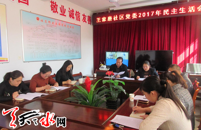 參加民主生活會(huì)的有天水郡街道黨工委副書(shū)記、紀(jì)工委書(shū)記馬文、社區(qū)黨委書(shū)記呂艷紅及社區(qū)黨委班子其他成員。