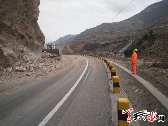 ????? 2018年3月5日,國(guó)道310線牛北公路K1387+500米處發(fā)生山體塌方,天水公路管理局麥積公路段立即組織機(jī)械和人員趕赴現(xiàn)場(chǎng),布設(shè)安全警示標(biāo)志,組織開展落實(shí)清理工作。截止11時(shí)30分,所有塌方體已全部清理完畢,道路恢復(fù)正常通行。 胡明全 攝