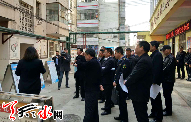 天天天水網(wǎng)訊(通訊員傅潔心)3月8日上午,全市縣區(qū)安監(jiān)局長來大城街道光明社區(qū)觀摩指導安全生產(chǎn)工作,由秦州區(qū)副區(qū)長劉睿智、區(qū)安監(jiān)局局長左凡陪同,觀摩組對我社區(qū)安監(jiān)工作探索出的“12351工作法”(即1個格局,2個主線,3個責任,5個到位,1個專干)及“消防三步走”工作法(即網(wǎng)格-社區(qū)-街道)給予了肯定。