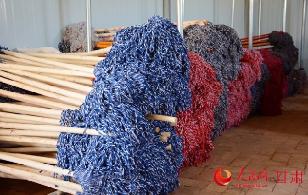 張軍強家里共有6口人,父母年老體弱,還有兩個孩子在上學(xué),他在2013年就被識別為建檔立卡戶,在當(dāng)時為了脫貧,唯一的出路就是外出務(wù)工,但他沒有一技之長,只能到處打短工。“2017年年初,我得知精準(zhǔn)扶貧的政策到村了,河堤修了、道路全部硬化了。”張軍強說,“考慮到教育孩子和照顧父母等問題,我決定返鄉(xiāng),立志通過精準(zhǔn)扶貧政策脫貧致富”。通過上網(wǎng)和駐村幫扶干部的指導(dǎo),張軍強了解到制作拖布在家鄉(xiāng)有銷路,而且制作過程和技術(shù)并不復(fù)雜,就這樣,張軍強和鄰村的兩位村民,每個人都申請了精準(zhǔn)扶貧貸款5萬元,全部用于投資建設(shè)拖布生產(chǎn)廠房。