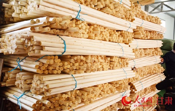 (廠房內(nèi)堆放的拖把桿)