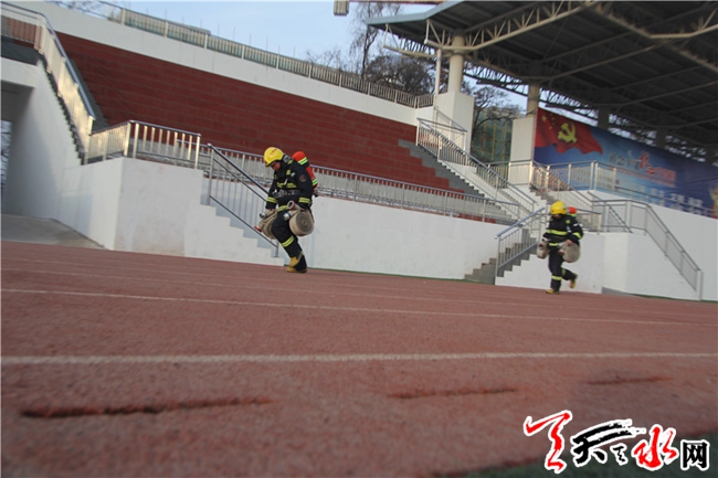 按照支隊訓(xùn)練計劃,中隊組織全體官兵開展5000米背負空氣呼吸器跑、負重登樓、100米負重跑、60米肩梯跑等訓(xùn)練,著重的訓(xùn)練了中隊官兵的耐力、爆發(fā)力和意志力。訓(xùn)練過程中,組訓(xùn)干部合理利用競爭機制,將人員分為兩組,以此提升官兵的積極性和訓(xùn)練熱情,中隊官兵積極投入訓(xùn)練工作,堅持挖掘自身潛能,咬牙爭取良好成績,切實顧及團體利益,有效保證了訓(xùn)練的成效。訓(xùn)練工作不止提升了官兵的體能素質(zhì),同時增強了官兵團隊意識,切實使官兵認識到一個團隊各個官兵對于團隊整體利益的重要作用。在練兵的過程中,官兵們積極創(chuàng)新,深思自身的不足,不斷的改變訓(xùn)練方法。穿插一些趣味的娛樂活動,讓戰(zhàn)士感受到了娛樂性,同時又讓戰(zhàn)士在潛移默化中增強了體質(zhì)。