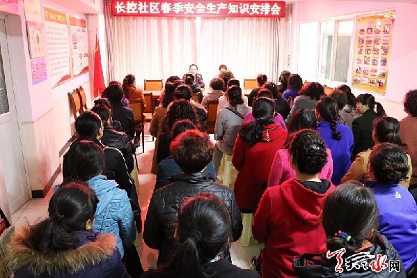 天天天水網(wǎng)訊(通訊員 楊曉斌)為進(jìn)一步增強(qiáng)轄區(qū)居民的消防安全意識(shí),提高自防自救能力。3月16日上午,秦州區(qū)七里墩街道長(zhǎng)控社區(qū)在會(huì)議室召開了春季消防安全知識(shí)培訓(xùn)。社區(qū)干部、網(wǎng)格員、居民組長(zhǎng)、樓院長(zhǎng)、轄區(qū)單位負(fù)責(zé)人等共計(jì)40多人參加了培訓(xùn)。