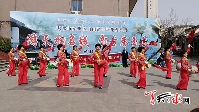 天天天水網(wǎng)訊【通訊員張彬】為積極響應(yīng)秦州區(qū)舉辦的以“游天水名城、賞古巷玉蘭”為主題玉蘭花觀賞周活動,3月20日下午,秦州區(qū)中城街道綠色市場社區(qū)婦聯(lián)聯(lián)合工會特邀轄區(qū)婦女腰鼓隊在自由路開展文藝演出,為古巷玉蘭增添了另一抹色彩。