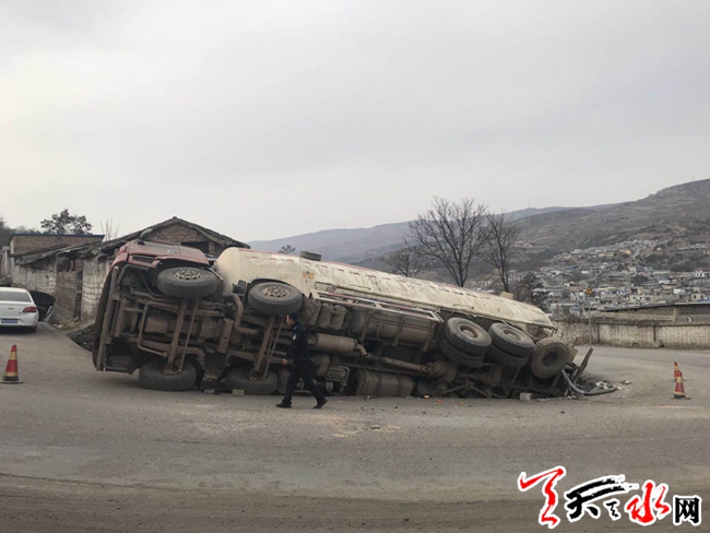 天天天水網(wǎng)訊(通訊員趙懿)3月23日上午9時許,秦州區(qū)執(zhí)法局機動中隊執(zhí)法人員正常巡查北山轄區(qū)時,發(fā)現(xiàn)秦州區(qū)玉泉鎮(zhèn)泰山路第一道轉(zhuǎn)彎處,一輛水泥罐車側(cè)翻,壓塌了路邊一戶人家四間房屋,所幸無人員受傷。據(jù)了解當時駕駛員上山會車時處理不當,導致水泥罐車滑入公路側(cè)面排水溝側(cè)翻。執(zhí)法人員當即詢問情況,并提醒房主留存受災資料。同時提心各位途經(jīng)的司機朋友謹慎駕駛,注意安全。