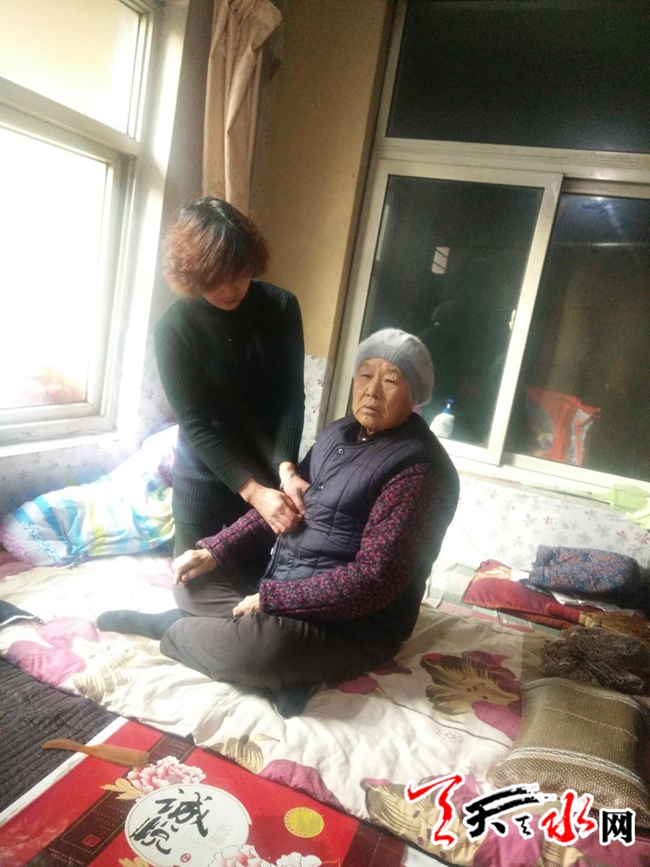 ????就在今年,婆婆不小心摔了一跤,右腿骨折,需住院治療,她扔下工作在醫(yī)院照顧婆婆,幫婆婆擦身翻背、洗臉、洗腳、洗衣服剪指甲、端屎端尿。住在一個病房的李大姐說:“大娘,您女兒真孝順啊,年紀輕輕卻什么都愿意做” 。婆婆高興的說:“呵呵,這是我兒媳婦”!老人家出院后,她在家里繼續(xù)請假照顧婆婆,好不容易找到的工作因為她請假時間太長而不愿意在雇傭她。村委會知道情況后幫她在村集體磚廠里謀求了一份工作。