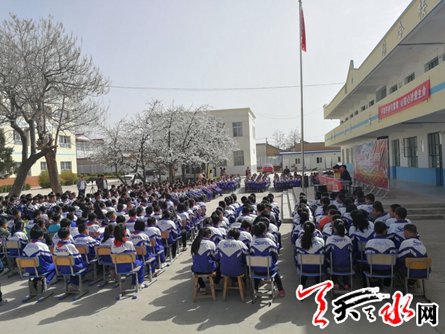 ????天天天水網(wǎng) 為深入推進(jìn)毒品預(yù)防教育“6.27工程”的開展,增強(qiáng)青少年學(xué)生識(shí)毒、防毒、拒毒意識(shí),根據(jù)局黨委的安排部署,4月3日,縣禁毒辦聯(lián)合大石派出所深入甘谷縣王川九年制學(xué)校開展青少年毒品預(yù)防教“6·27”工程進(jìn)校園活動(dòng)。縣公安局副局長、縣禁毒辦主任范朝林,縣禁毒辦副主任宋松萍,縣公安局大石派出所民警王新昌,縣禁毒辦全體民警,大石學(xué)區(qū)黨支部書記李友林,王川九年制學(xué)校黨支部書記王昌林、副校長王全福、教導(dǎo)主任王全林及王川九年制學(xué)校全校師生共計(jì)600余人參加了此次活動(dòng)。