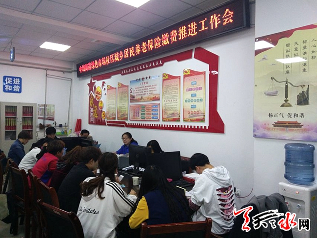 天天天水網(wǎng)訊【通訊員張彬】為了切實做好2018年度城鄉(xiāng)居民養(yǎng)老保險的續(xù)繳費工作,秦州區(qū)中城街道綠色市場社區(qū)堅持“深推進、廣宣傳”的原則,多舉措推進這項工作有序開展。