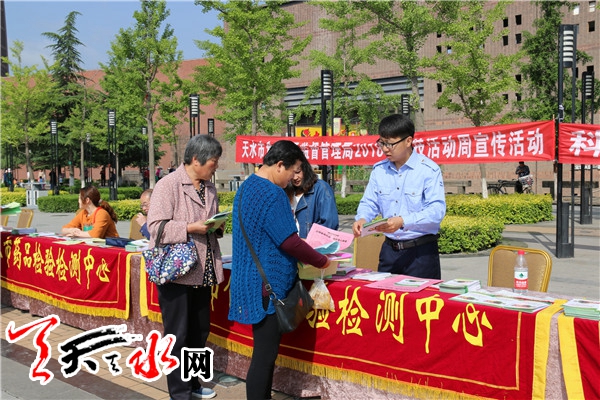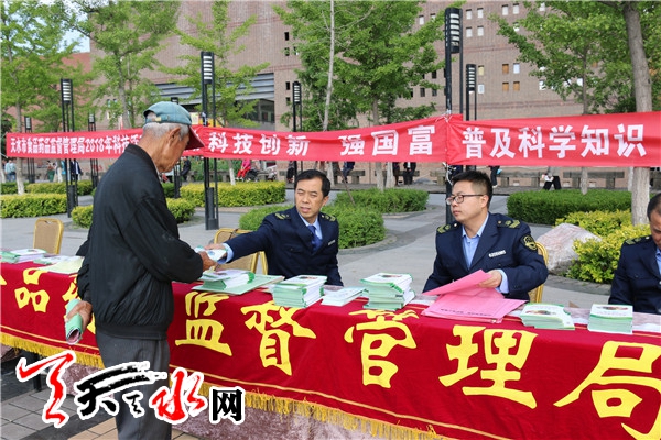 ????天天天水網(wǎng)訊 5月25日,天水市食品藥品監(jiān)督管理局在秦州區(qū)天河廣場(chǎng)舉行了以“科技創(chuàng)新、強(qiáng)國(guó)富民”為主題的2018年“科技活動(dòng)周”食品藥品安全科普宣傳活動(dòng)。天水市食藥監(jiān)局及各直屬單位、秦州區(qū)食藥監(jiān)局相關(guān)人員現(xiàn)場(chǎng)參加了宣傳活動(dòng)。