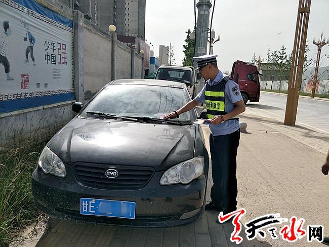 5月28日,成紀(jì)新城中隊(duì)首次對(duì)成紀(jì)新城人行道上亂停放機(jī)動(dòng)車(chē)進(jìn)行處罰。