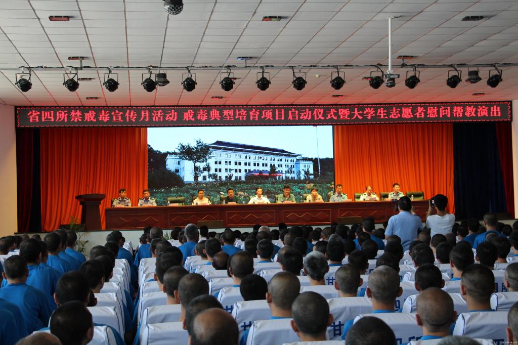 ????此次慰問幫教演出是我校配合省四所開展禁戒毒宣傳的一次重要活動,也是我校開展校園禁戒毒宣傳活動月的一項重要內(nèi)容。郭建忠在講話中從禁戒毒教育的形式、警示教育基地建設及資源共享、禁戒毒宣傳等方面表達了與省四所不斷加強合作,提高青少年防毒禁毒意識,構建和諧平安校園的意愿。