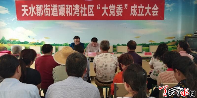 天天天水網(wǎng)訊 按照市、區(qū)委組織部、街道黨工委關于城市基層黨建工作的安排,為進一步提升社區(qū)黨建工作的科學化水平,構(gòu)建區(qū)域化黨建工作新格局,6月13日上午,秦州區(qū)天水郡街道暖和灣社區(qū)在三樓會議室召開“大黨委”成立大會。天水郡街道武裝部部長馬韜同志、轄區(qū)單位負責人、黨員代表、居民代表等60人參加大會,會議由社區(qū)黨委書記趙萬江同志主持。