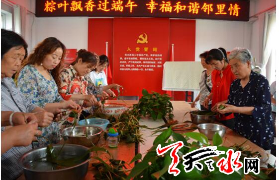 ????6月15日,秦州區(qū)長開廠舊福利區(qū)的一幢三層小樓里不時(shí)傳出一陣陣歡聲笑語。原來,這是七里墩長開社區(qū)聯(lián)合東十里社區(qū)在共同舉辦的“粽葉飄香過端午幸福和諧鄰里情”為主題的社區(qū)文化藝術(shù)活動在這里舉行。