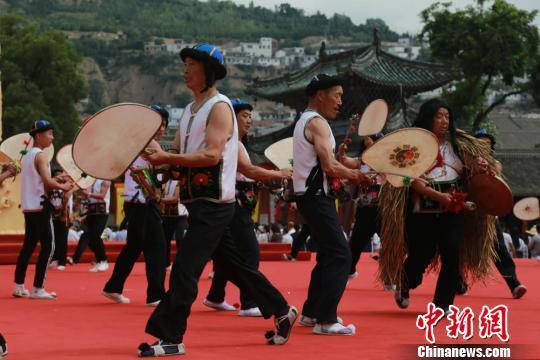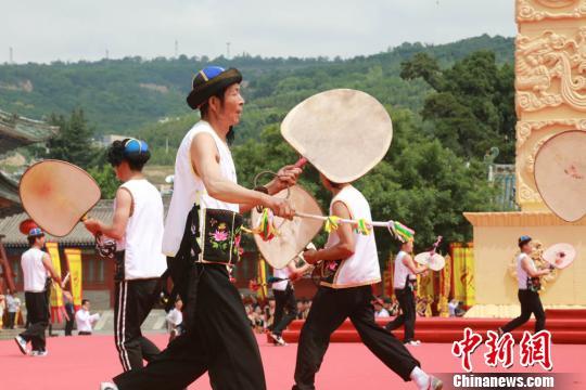 天天天水網(wǎng)訊據(jù)中新網(wǎng)消息 6月23日,甘肅武山縣民間藝人敲著旋鼓,唱著祈福的歌,鼓和身體不停旋轉(zhuǎn),所以稱為旋鼓舞。羊皮鼓是旋鼓舞的主要道具,鼓面為精制的羊皮,以鐵圈為箍,外形如一面大葵扇。旋鼓舞舞姿粗狂豪邁、彪悍威武、渾厚雄壯。2008年6月,甘肅武山旋鼓舞被列入國家級非物質(zhì)文化遺產(chǎn)名錄。當(dāng)日,甘肅武山縣水簾洞景區(qū)舉行祈福文化旅游節(jié)開幕式,祈福文化民俗表演旋鼓舞震撼登場。