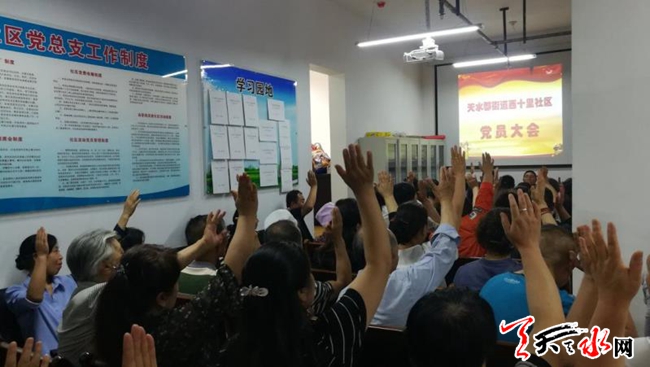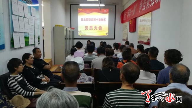 天天天水網(wǎng)訊 為了進(jìn)一步推進(jìn)社區(qū)黨組織工作,按照《中國(guó)共產(chǎn)黨章程》和上級(jí)黨組織的有關(guān)規(guī)定,6月21日下午,秦州區(qū)西十里社區(qū)在社區(qū)會(huì)議室召開了黨員大會(huì),選舉產(chǎn)生了新一屆黨委委員,召開了委員會(huì)議,選舉產(chǎn)生了黨委書記、副書記。選舉大會(huì)由天水郡街道計(jì)生辦主任劉海生同志主持,社區(qū)干部、黨員共81人參加此次會(huì)議。