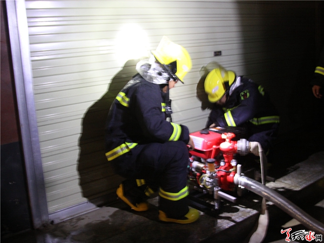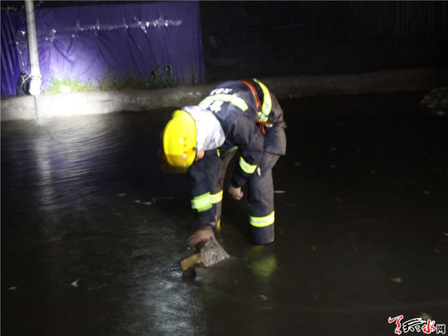 25日凌晨2時30分,武山中隊接到指揮中心的命令后,中隊官兵在中隊長康斌的帶領下火速出動1車8人趕赴災害現(xiàn)場積極投入到抗洪搶險工作中。中隊長對參戰(zhàn)官兵提出要求:在確保人民生命財產(chǎn)安全的前提下,努力把災害損失降到最低!抗洪搶險小分隊立即進行任務分工,大家秩序井然、動作迅速,不斷用排吸器和抽水泵向外排水。