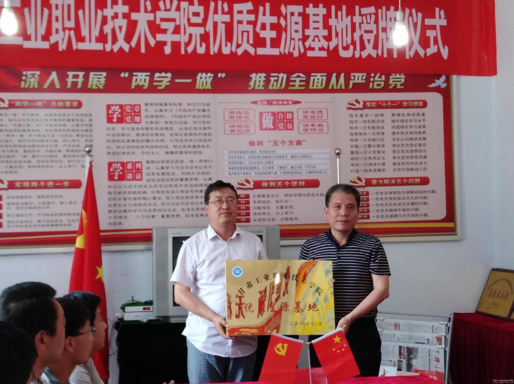 在華亭職教中心,學(xué)校黨支部及各部門負責(zé)人出席優(yōu)質(zhì)生源基地授牌儀式。授牌儀式結(jié)束后,魯挑建在華亭職教中心校領(lǐng)導(dǎo)陪同下參觀了校園建設(shè)和部分實驗實訓(xùn)室。