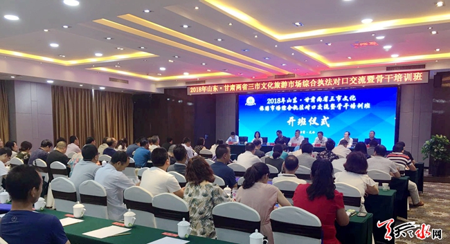 天天天水網(wǎng)訊【記者陳娟】7月18日,2018年山東·甘肅兩省三市文化旅游市場(chǎng)綜合執(zhí)法對(duì)口交流暨骨干培訓(xùn)班開(kāi)班。