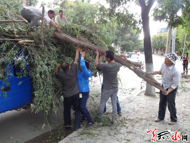 7月12日,羅玉河水漸漸褪去,露出河床。為了汛期河道暢通,確保羅玉河安全度汛,防患于未然,由東關(guān)街道忠武巷社區(qū)黨委號(hào)召,動(dòng)員社區(qū)干部與居民12人,組成志愿者,穿上水鞋,手拿斧子、手鋸,對(duì)河床內(nèi)十幾棵粗大的樹木進(jìn)行砍伐。有幾棵樹木直徑已有一尺多,高約數(shù)十米,加之河床內(nèi)淤泥較深,砍伐難度大。志愿者齊心協(xié)力,輪流上陣,硬是把一棵棵大樹砍倒、截?cái)?。再系上繩索,把樹干、樹枝從淤泥中拉上河堤。待幾棵樹木砍完,每一位志愿者渾身是泥,手被磨出了血泡,手臂上、腿上被樹枝劃出了一道道血痕,他們沒(méi)有怨言,堅(jiān)持著又把樹木裝到車運(yùn)走上才回家。