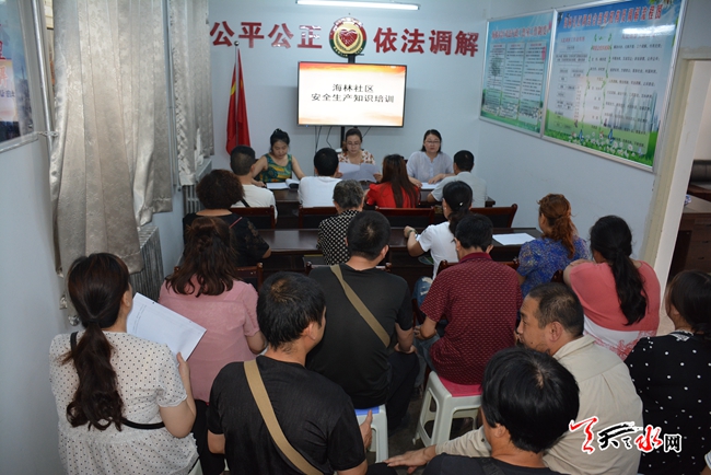 天天天水網(wǎng)訊(通訊員 胡春蘭)為進(jìn)一步提高社區(qū)居民的安全意識(shí),提高預(yù)防能力,7月18日上午,七里墩街道海林社區(qū)舉辦了一場(chǎng)安全生產(chǎn)知識(shí)進(jìn)社區(qū)、進(jìn)家庭活動(dòng),社區(qū)居民、樓棟長(zhǎng)、物業(yè)公司代表40余人參加了培訓(xùn)活動(dòng)。