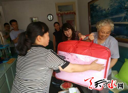 天天天水網(wǎng)訊(通訊員 韓雪梅) 8月7日,天水市婦聯(lián)主席何忠蘭、副主席李萍在天水郡街道辦事處副主任趙雙萍以及瀛池社區(qū)主任姚芳芹的陪同下慰問(wèn)擁軍模范王秀芹老人,老人十幾年來(lái),每年都為消防戰(zhàn)士送去自己親手縫制的鞋墊。市婦聯(lián)何主席與老人話家常,悉心關(guān)心她的健康和生活,希望老人身體健康,好好安享晚年,并表達(dá)了對(duì)她擁軍愛(ài)國(guó)精神的敬佩。