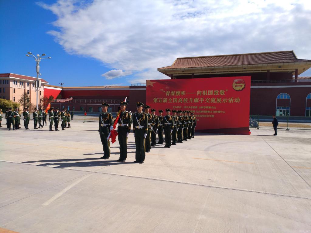 為深入貫徹落實習(xí)近平新時代中國特色社會主義思想和黨的十九大精神,緊緊圍繞培養(yǎng)中國特色社會主義合格建設(shè)者和可靠接班人的根本任務(wù),加強“國旗法”、“國歌法”教育,持續(xù)發(fā)揮升旗儀式的教育引導(dǎo)作用,在青年學(xué)生中深化社會主義核心價值觀和愛國主義教育,培育學(xué)校思想引領(lǐng)工作新品牌,在往屆活動成功舉辦基礎(chǔ)上,由團中央學(xué)校部、全國學(xué)聯(lián)秘書處主辦,中國國旗網(wǎng)、北京新風(fēng)旗幟文化傳播中心承辦,中國人民解放軍陸軍防化學(xué)院支持的第五屆全國高校升旗手交流展示活動,于9月29日上午在防化學(xué)院閱兵訓(xùn)練場成功舉辦。