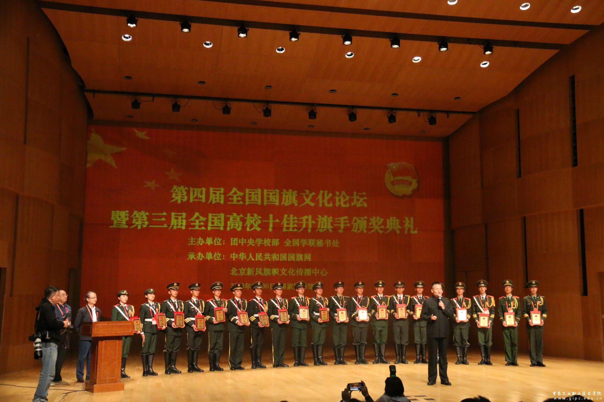 本屆交流展示活動共有全國27個高校的比賽隊伍,46個高校的十佳高校升旗選手,4所高校的觀摩隊伍,共七百多名師生參加現(xiàn)場活動。經(jīng)過激烈的角逐,我校國旗護衛(wèi)隊榮獲“團體二等獎”,其中國旗護衛(wèi)隊隊員駱安團經(jīng)過“我是光榮升旗手”演講比賽、基礎(chǔ)隊列動作、升旗技術(shù)動作、國旗法規(guī)筆試、綜合印象、觀眾評議等環(huán)節(jié)層層嚴(yán)格的現(xiàn)場綜合考核,不負(fù)眾望,脫穎而出,獲得“優(yōu)秀升旗手”榮譽稱號。我校獲得優(yōu)秀組織獎。