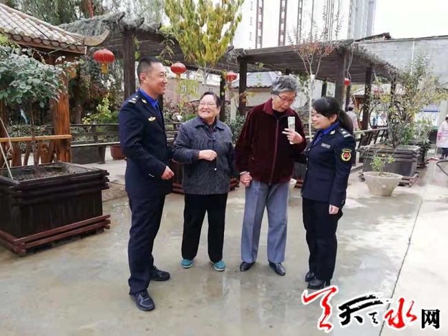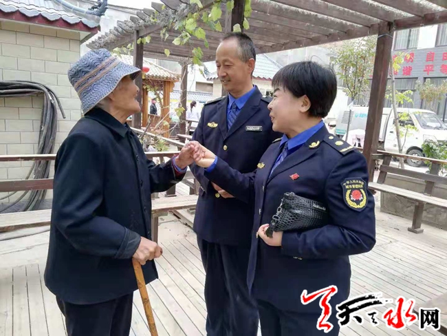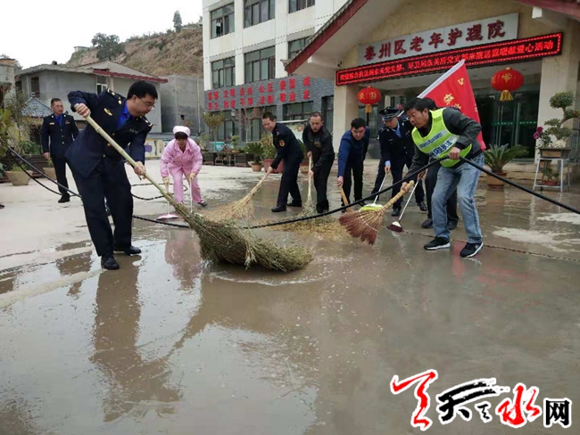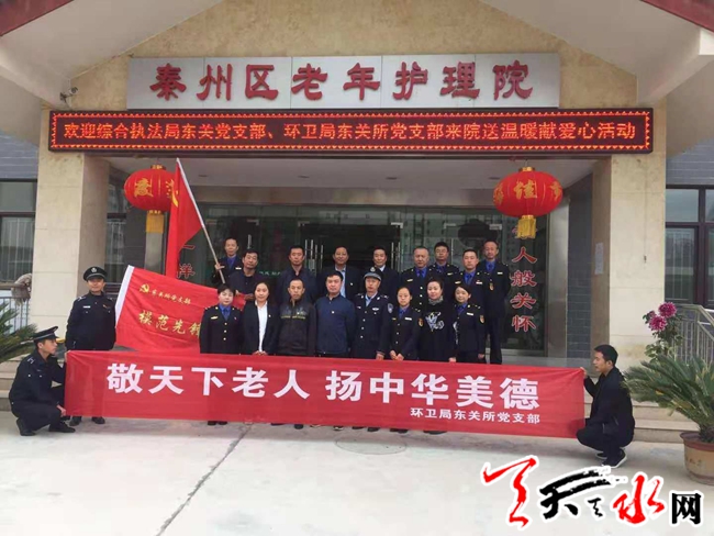 天天天水網(wǎng)訊(通訊員 孟劍鋒)2018年10月12日上午秦州區(qū)執(zhí)法局黨支部以“主題黨日”活動(dòng)為契機(jī),組織全體黨員聯(lián)合東關(guān)環(huán)衛(wèi)所黨支部前往秦州區(qū)王家磨老年護(hù)理院義務(wù)勞動(dòng),同時(shí)陪老人聊天,參觀老人起居生活環(huán)境等。