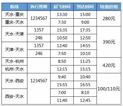 重慶-天水航班,原價7折,現(xiàn)減為6.5折。