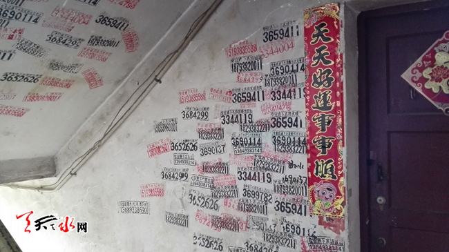 10月29日,記者在秦州區(qū)共和巷、合作路等很多居民樓的墻壁上、樓道口等處看到各類小廣告十分醒目。廣告內(nèi)容五花八門,有招工、服務(wù),甚至還有辦假證、無抵押貸款等廣告,廣告更是“五顏六色”,紅的、綠的、藍(lán)的、黑的……