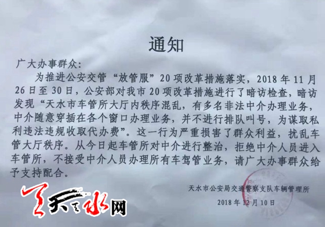 10日起,天水市車(chē)管所拒絕中介人員進(jìn)入