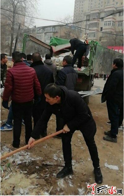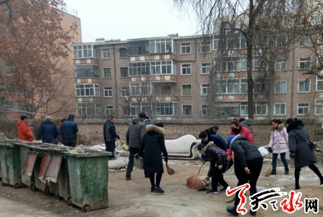 ????天天天水網(wǎng)訊【通訊員 董強(qiáng)強(qiáng)】1月4日上午,秦州區(qū)東十里社區(qū)聯(lián)系秦州區(qū)環(huán)衛(wèi)處與長低廠物業(yè)組織居民共同對(duì)長低廠家屬院外圍的生活垃圾進(jìn)行了集中清理。