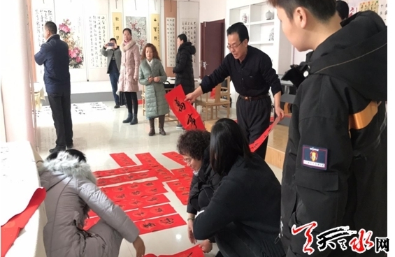 ????1月28日上午,邀請(qǐng)轄區(qū)老黨員、書法愛好者在和諧路社區(qū)文化之家為居民寫春聯(lián)、送福字,書法家們現(xiàn)場揮毫潑墨,精心創(chuàng)作了一幅又一幅寓意喜慶、吉祥的對(duì)聯(lián)。居民們圍在桌旁排隊(duì)等候,互相討論著各副春聯(lián)的蘊(yùn)意,現(xiàn)場春意融融溫馨熱烈,居民爭相領(lǐng)走春聯(lián)感受濃濃年味。社區(qū)居民紛紛表示:“書法家的字寫地太好了,春節(jié)貼在門上會(huì)更加喜慶,社區(qū)每年開展這樣的活動(dòng)真是太好了。”一上午書法家書寫并送出春聯(lián)200多副,大家都手捧大紅春聯(lián),臉上洋溢著掩飾不住的喜悅之情。社區(qū)還將寫好的春聯(lián)送到了轄區(qū)困難家庭里,為他們送去新年祝福,同時(shí)也送去了黨和政府對(duì)居民群眾的溫暖與關(guān)懷。
