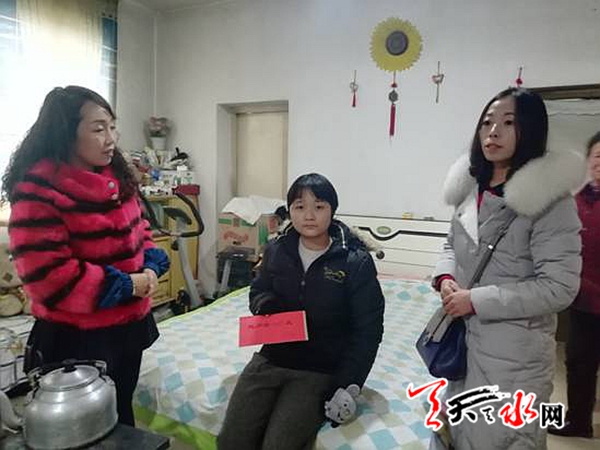 天天天水網(wǎng)訊(通訊員 王桂芳)為深入貫徹落實(shí)黨的十九大精神和市區(qū)相關(guān)安排,讓困難黨員、群眾過(guò)上溫暖、歡樂(lè)的春節(jié),1月30日上午,天水郡街道黨工委副書(shū)記、紀(jì)工委書(shū)記晏紅同志、蓮?fù)ど鐓^(qū)干部先后來(lái)到蓮?fù)ど鐓^(qū)72歲困難老黨員紹銀奎家中、殘疾兒童李佳璇家中看望慰問(wèn),代表組織為他們送上新春祝福和慰問(wèn)金,將黨和政府的溫暖送到困難群眾心坎里。