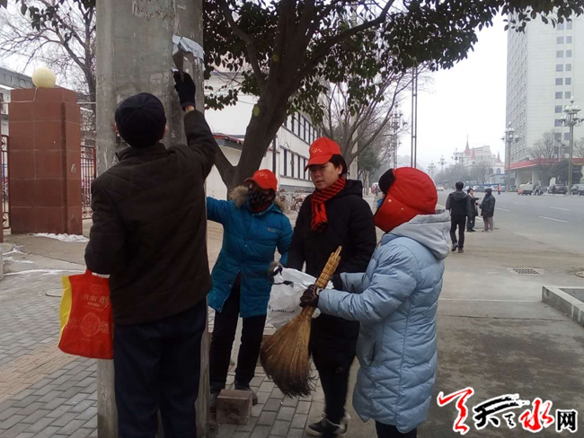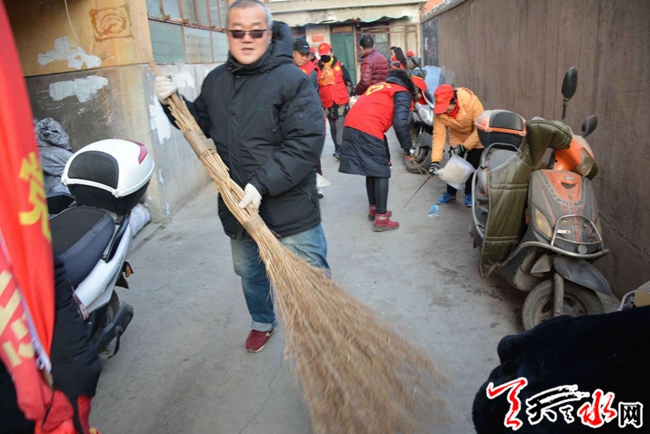 ????天天天水網(wǎng)訊【通訊員 葛林】春節(jié)將至,為營造整潔、清新、優(yōu)美的環(huán)境,確保居民群眾渡過一個歡樂、祥和、平安的新春佳節(jié)。2月1日上午,秦州區(qū)七里墩街道海林社區(qū)組織黨員干部、志愿者開展春節(jié)前“清潔城鄉(xiāng) 美化家園”環(huán)境衛(wèi)生大掃除行動,對各類衛(wèi)生死角進行“大清洗”,讓“美麗海林”煥發(fā)新的容顏,讓居民干干凈凈過新年。