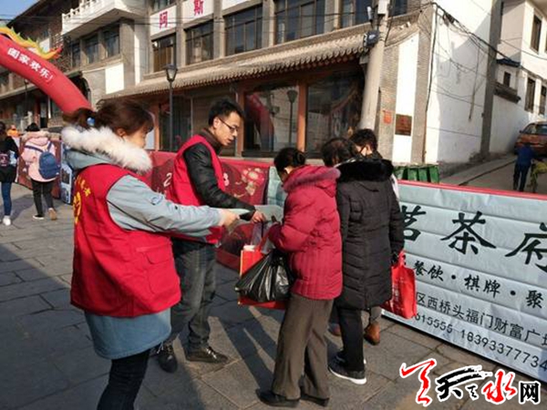 天天天水網(wǎng)訊(通訊員 惠曉榮) 一年一度的上九廟會,又稱“朝觀”,是天水人約定俗成的民俗文化活動,也是玉泉觀最重要的傳統(tǒng)廟會。朝觀活動由來已久,在明代興起,距今已有數(shù)百年的歷史。對天水人而言,朝觀是一個普天同慶的節(jié)日,伊民巷社區(qū)在廟會來臨之際,組織志愿者上山打掃衛(wèi)生,發(fā)安全傳單,利用轄區(qū)LED顯視屏宣傳拜年標(biāo)語等一系列活動營造節(jié)日氛圍,用實(shí)際行動支持我們天水人民的傳統(tǒng)廟會。