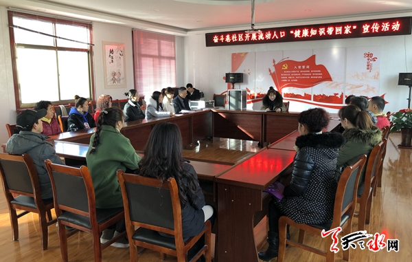天天天水網(wǎng)訊(通訊員 強亞麗)為了扎實開展好2019年度“把健康帶回家”,流動人口關(guān)懷關(guān)愛宣傳活動,為了倡導(dǎo)全民養(yǎng)成健康文明生活方式,為了營造全社會關(guān)心關(guān)愛流動人口健康的社會氣氛,大城街道奮斗巷社區(qū)在春節(jié)期間組織開展了“把健康帶回家、幸福美滿過大年”流動人口衛(wèi)生計生關(guān)懷關(guān)愛宣傳活動。