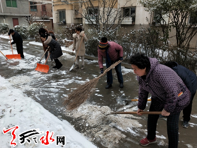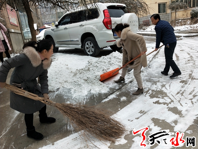 天天天水網(wǎng)訊(通訊員吳娟)為了積極應(yīng)對(duì)路面積雪,積冰給居民出行帶來的影響,保障居民群眾出行安全,持續(xù)一夜的大雪過后,一場(chǎng)大雪,天寒地凍,在給居民帶來美麗景色的同時(shí),道路上堆積的雪卻也給居民的出行帶來了不便。為了方便社區(qū)居民出行,保障居民出行安全,消除安全隱患,2月18日上午,王家磨社區(qū)開展了全民掃雪活動(dòng)。社區(qū)黨員干部、工作人員、志愿者參加了此次活動(dòng)。