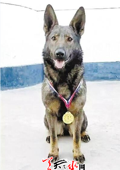 ??? 天天天水網(wǎng)訊 近日,從公安部南昌警犬基地傳來喜訊,編號156011110100388的甘谷警犬“精衛(wèi)”被公安部南昌片區(qū)授予警犬最高榮譽(yù)——“功勛犬”稱號。