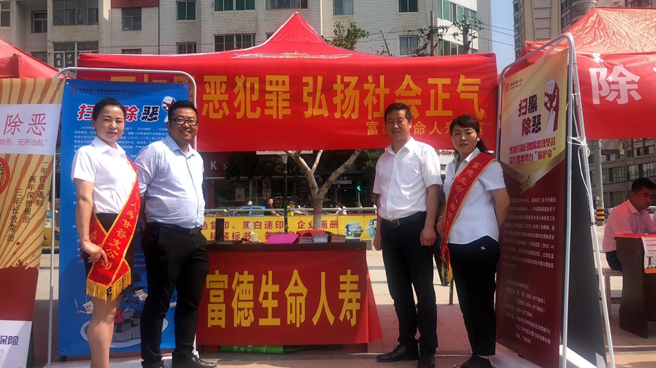 富德生命人壽甘谷支公司作為義務(wù)宣傳單位,高度重視此次活動(dòng)的參與,現(xiàn)場(chǎng)為廣大群眾發(fā)放公司掃黑除惡宣傳手冊(cè)、《致全縣廣大黨員群眾的一封信》400余份,現(xiàn)場(chǎng)接受群眾咨詢100余人次,讓群眾真切體驗(yàn)到了金融單位合力共建良好社會(huì)、經(jīng)濟(jì)環(huán)境的強(qiáng)烈意愿和濃烈氛圍。