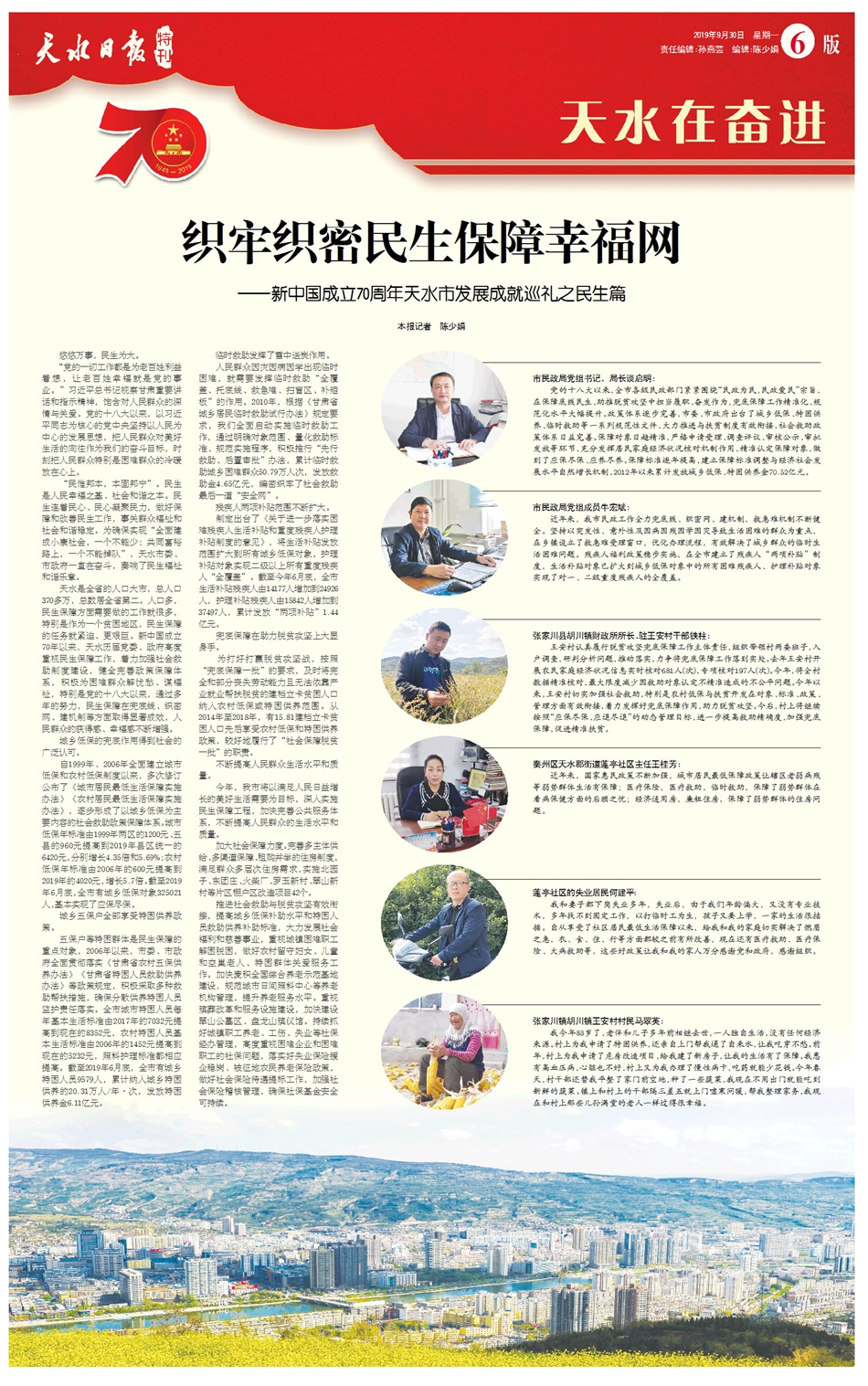 【壯麗70年】天水:織牢織密民生保障幸福網(wǎng)