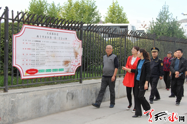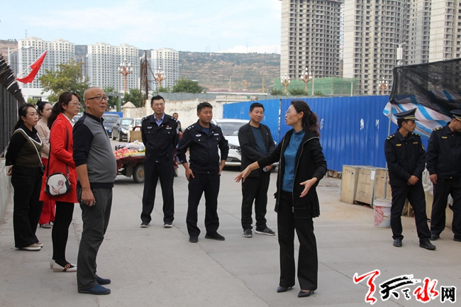 天天天水網(wǎng)訊 為了推進(jìn)街道“不忘初心、牢記使命”主題教育深入開(kāi)展,把開(kāi)展主題教育轉(zhuǎn)化為促進(jìn)街道各項(xiàng)重點(diǎn)難點(diǎn)工作的實(shí)際行動(dòng)。近日,天水郡街道辦事處按照街道黨工委統(tǒng)一安排?,班子成員帶頭深入一線,開(kāi)展背街小巷老舊小區(qū)環(huán)境衛(wèi)生綜合治理專題調(diào)研,以進(jìn)一步推動(dòng)解決街道轄區(qū)背街小巷老舊小區(qū)環(huán)境衛(wèi)生治理中的重點(diǎn)難點(diǎn)問(wèn)題。