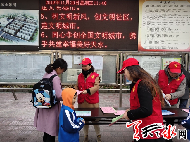 天天天水網(wǎng)訊(通訊員 朱秀娟)為了同心爭創(chuàng)全國文明城市,進(jìn)一步提高居民對創(chuàng)建全國文明城市的認(rèn)識及知曉率。11月20日中午,七里墩街道五里鋪社區(qū)組織黨員志愿者在社區(qū)所在小區(qū)門口開展了創(chuàng)建全國文明城市宣傳活動,正值下班放學(xué)的時間段,進(jìn)出小區(qū)的家長學(xué)生很多,黨員志愿者向居民發(fā)放了宣傳手冊,并耐心講解了創(chuàng)建全國文明城市相關(guān)知識,居民反響很好,并表示將積極參與到創(chuàng)建全國文明城市的行動中來。下一步社區(qū)志愿者將繼續(xù)入戶宣傳,讓更多的人參與到共建幸福美好天水的行動中來!
