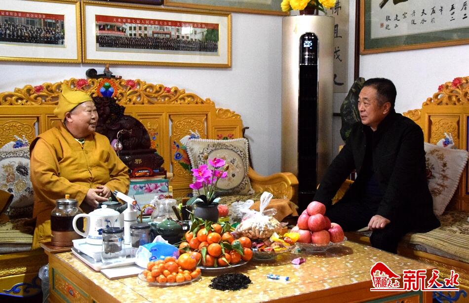 新天水訊【天水日報記者 馬放】1月2日,市人大常委會黨組書記、主任蔣曉強到秦州區(qū)炳靈寺,看望慰問聯(lián)系的宗教界人士省佛教協(xié)會常務理事、市佛教協(xié)會副會長、市七屆人大代表、秦州區(qū)炳靈寺主持釋信念,向釋信念及炳靈寺全體僧眾送去黨委和政府的關心關懷,并提前致以春節(jié)的問候和祝福。