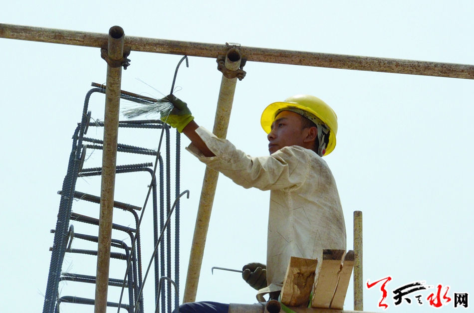 圖為藉河二期工人焊接中隔墻鋼筋。